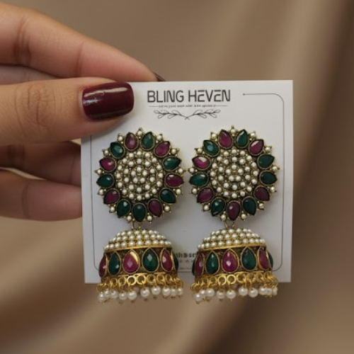 Royal Stone Pearl Jhumka Earrings